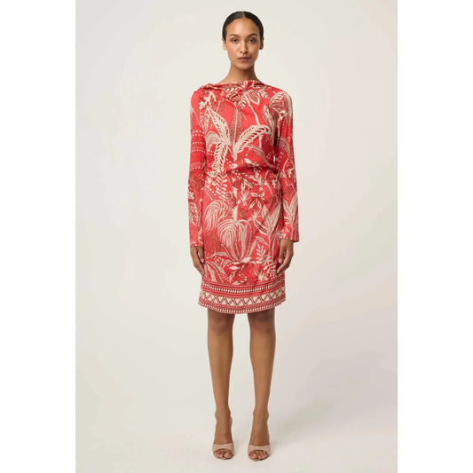 Once Was Helsa Draped Neck Cupro Viscose Stretch Long Sleeve Dress - Crimson Palms
