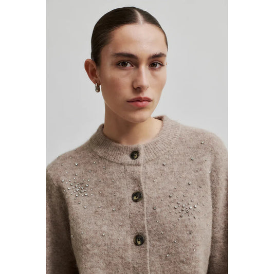 Second Female Sparkling Lurex Cardigan - Roasted Cashew