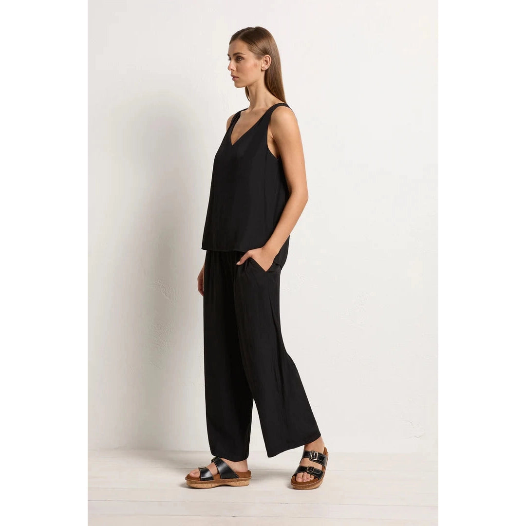 Crafted from Mela Purdie's fluid Mache, offering a fuller bodied feel and tactile face. The Audrey Tank is a Mela Purdie essential with a universally flattering soft v-neckline. The fully covered back features a placket for ease of movement. Perfect for layering, the Audrey Tank has a stepped hem for longer length at the back and a double layered front for extra coverage.