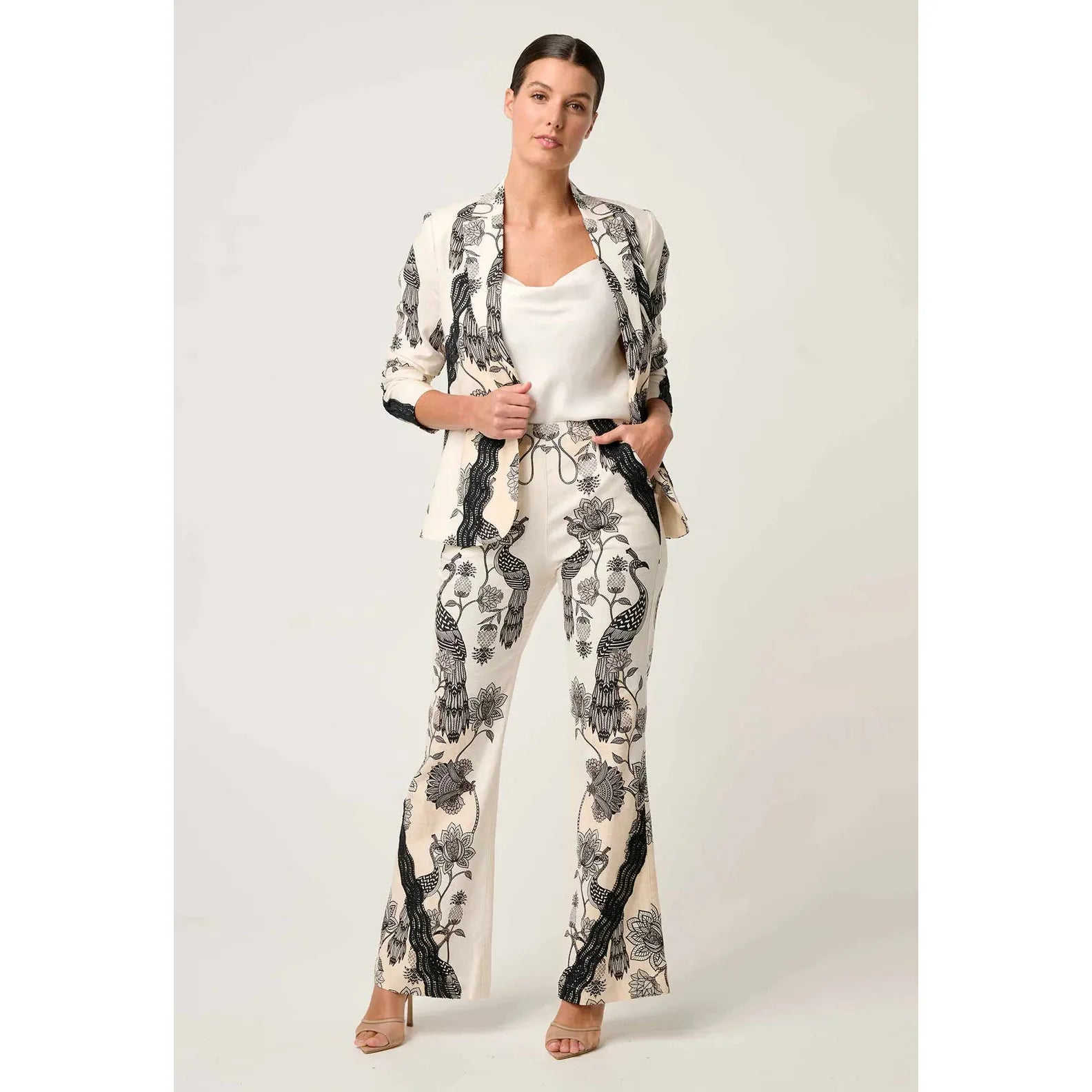 Finished with a sharp lapel, single-button front closure, and softly padded shoulders, this blazer is designed to command attention—whether styled as a powerful co-ord with the matching Leandro Stretch Pant, or layered over a silk camisole and denim for a modern twist.